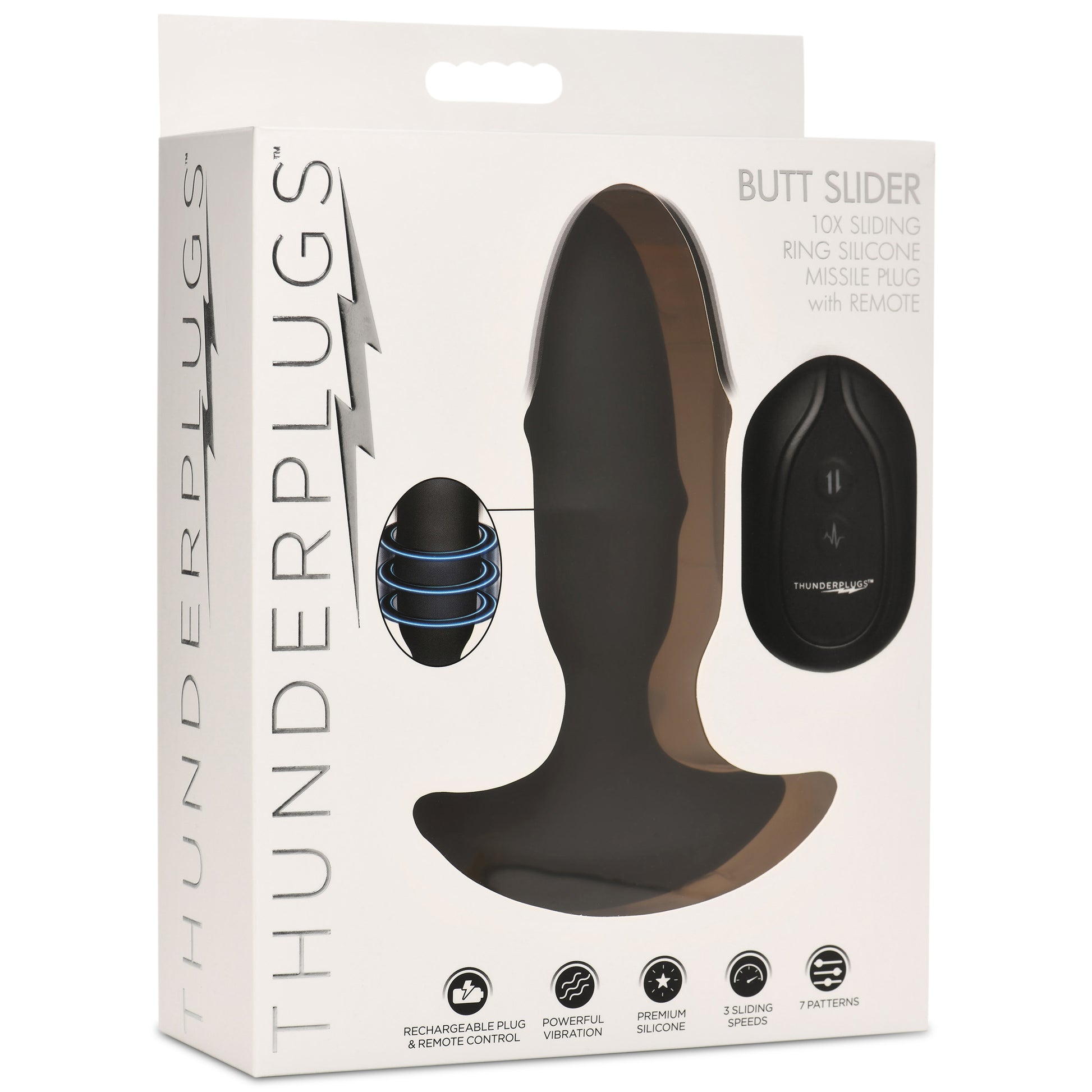 For those who are experienced, anal enthusiasts this is a delight for your derriere! This sliding ring Missile Plug is perfect to load your back cannon with and enjoy the massive sensations from the stretch and sensations! Made out of premium, phthalate-free silicone, the plug is firm with a ring beneath the silky smooth surface. Enjoy 3 speeds of sliding as the ring moves across the plug while inserted. The slightly tapered, round tip assists with insertion and then you can enjoy up to 4.8 inches of length and 1.9 inches of width that opens you up inside. This backdoor missile also rumbles with 3 speeds and 7 patterns of powerful vibration for you to enjoy! Rated IPX5, it is splashproof and can handle fluids and spills but should not be submerged underwater or taken into the shower. Use the battery-operated remote to control the functions so you don't have to fumble with the controls once inserted. Use with water-based lubricants only for best results. Recharge using the USB cable included. To clean, wash with warm water and mild soap then spray with a toy cleaner and pat dry.