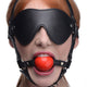 Gag and blind your sub with this all-in-one set! The lightweight leather blindfold takes away your sight to heighten your other senses, keeping you guessing while your partner has their way with you while increasing pleasure. The red ball gag gives your sub an enticing submissive appearance!