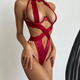 It doesn’t get any bolder than this black cut-out strappy bandage one-piece lingerie. With underwire for extra support, this sexy body will take your and your partner’s breath away. Sensual, this exquisite playsuit is irresistibly alluring. Construction lines highlight the waistline, while at the same time creating a graphic look.