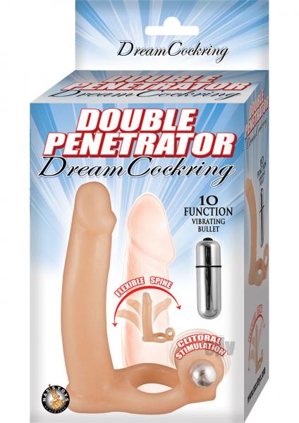Multi-tasker features a penetrator with flexible spine, a cock ring and a 10 function vibrating bullet. Waterproof vibrations. Three LR44 batteries included. Shaft of penetrator measures 6.25 inches long, 6 inches insertable, 1.125 inches diameter.