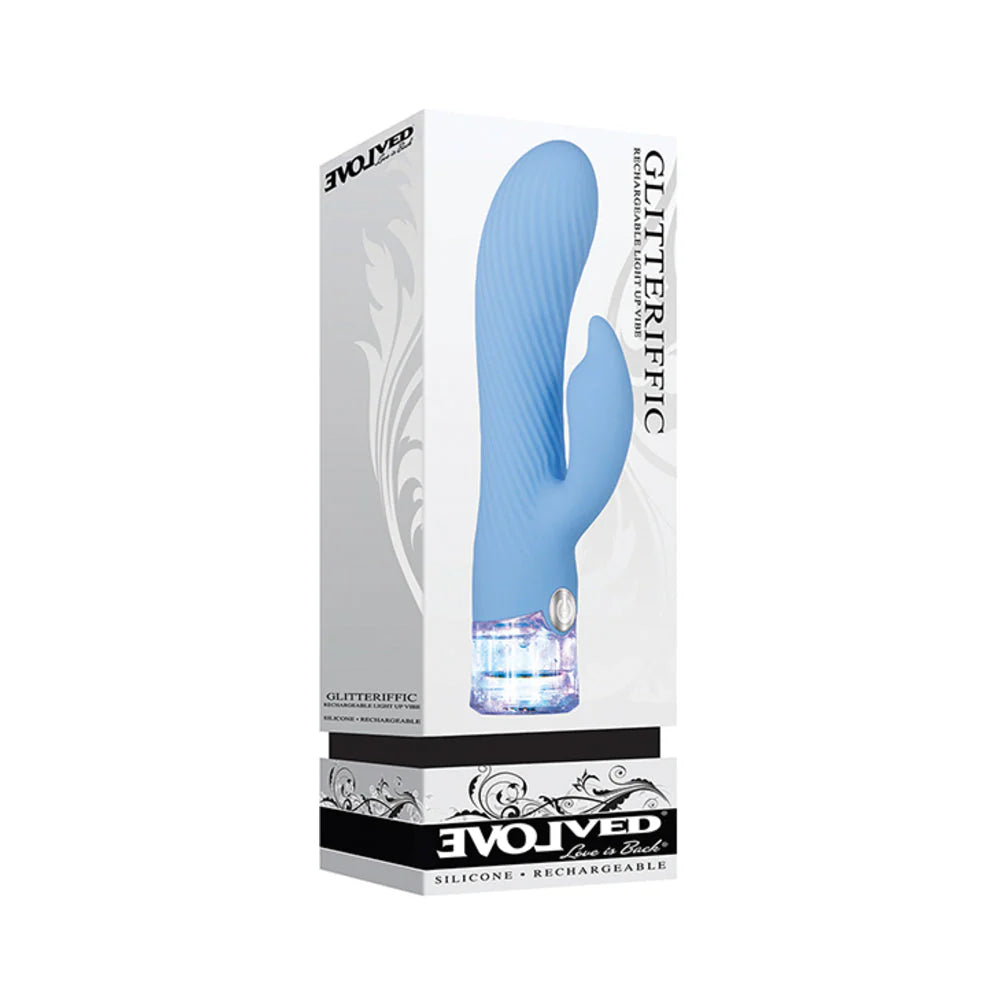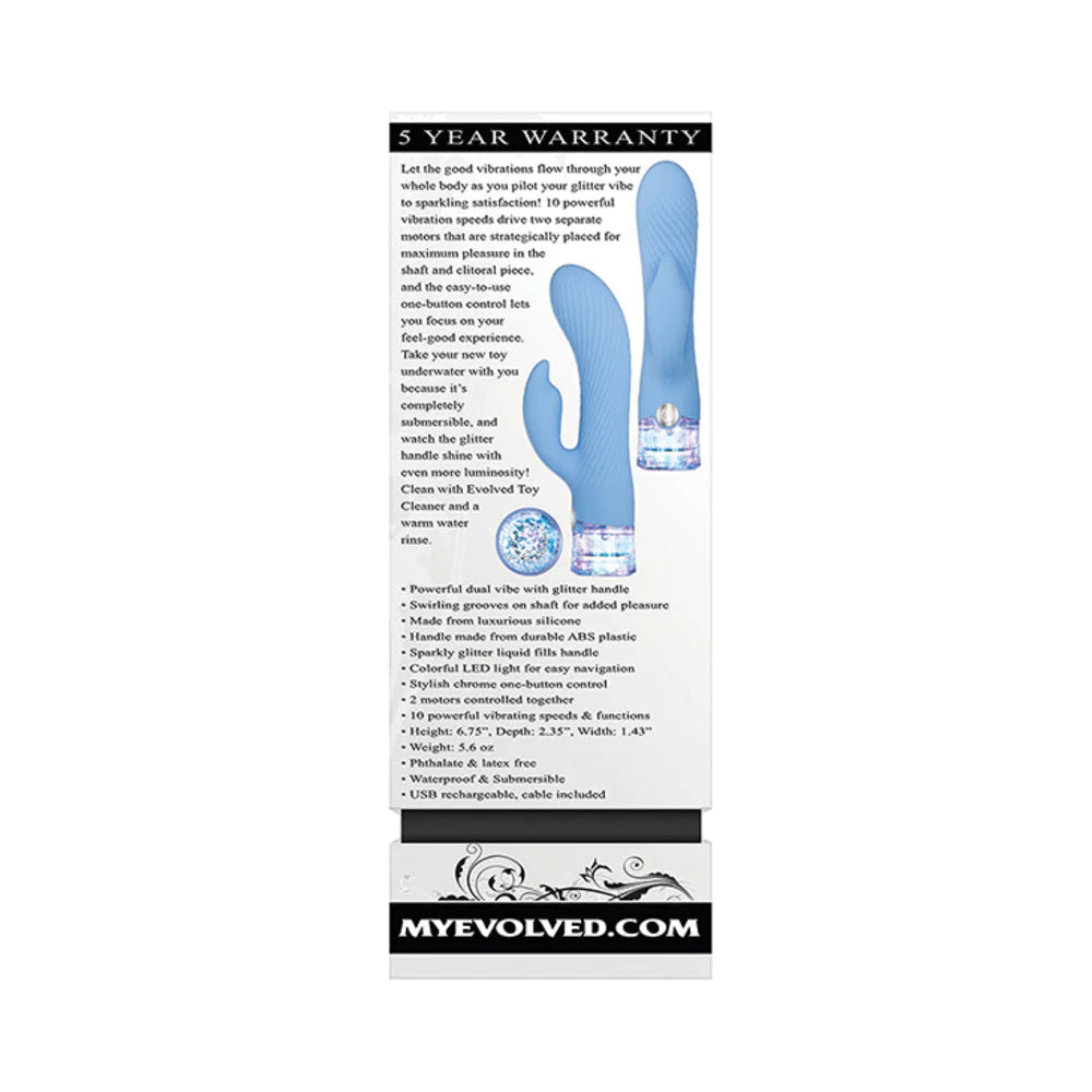 Let the good vibrations flow through your whole body as you pilot your glitter vibe to sparkling satisfaction! 10 powerful vibration speeds drive two separate motors that are strategically placed for maximum pleasure in the shaft and clitoral piece, and the easy-to-use one-button control lets you focus on your feel-good experience. Take your new toy underwater with you because it's completely submersible, and watch the glitter handle shine with even... Read More
