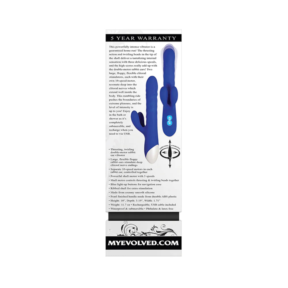 The thrusting action and twirling beads in the tip of the shaft deliver a tantalizing internal sensation with three delicious speeds, and the high scores really add up with the double motor rabbit ears! Two large, floppy, flexible clitoral stimulators, each with their own 10 speed motor, resonate deep into the clitoral nerves which extend well inside the body. This rumbling ride pushes the boundaries of extreme pleasure, and the... Read More
