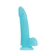 Glow in the dark smooth Thermoplastic Elastomers TPE dong with balls and suction cup measures 5.69 inches long, 5 inches insertable.