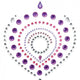 Adorn your gorgeous body with these sparkling jeweled designs. Each elegant set is created to accent your breasts and bikini area. All three pieces are self adhesive and reusable. Each nipple pasty is roughly 2.5 inches by 3.25 inches and the pubic pasty is roughly 2.75 inches by 3 inches. All pasties include pink, purple and clear crystals.