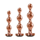 These sleek, stylish metal plugs offer sexy nonporous playtime for all! This set is a must-have with multiple sizes for a truly erotic experience. Petite, medium, and large plugs alike feature bulbous, shiny shafts with incremental bulbs that look shapely and feel even better. Warm or cool the metal with water for sexy sensation play and find out how these little sculptures can enhance your pleasure! The chic black gem at the base of each plug lets you play in style! Rose gold 3-piece plug set Small, medium & large plugs Cool or warm with water for sensation play Incremental 3-bead design Stylish sparkling black gem base Made from body-safe nonporous aluminum alloy Gem made from durable ABS plastic Wide safety base Waterproof Phthalate & latex free Small Length: 4.14”, Depth: 1.25”, Width: 1.25” Medium Length: 4.6”, Depth: 1.37”, Width: 1.37” Large Length: 5.3”, Depth: 1.57”, Width: 1.57” Weight: Over .5 lb Small insertable length: 3.75”, .9” diameter Medium insertable length: 4.25”, 1” diameter Large insertable length: 4.75”, 1.1” diameter Specifications: - UPC : 844477019154