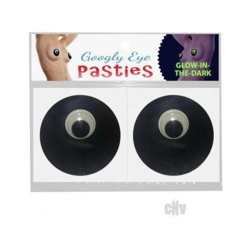 Give your lover a laugh and a surprise with your googly eyes! Why not have a little fun in the bedroom with these humorously sexy high-quality pasties? Get sexy, get silly, and get googly! The vinyl pasties peel off the header back and are designed so that the eyes are above the nipples.They even glow in the dark!