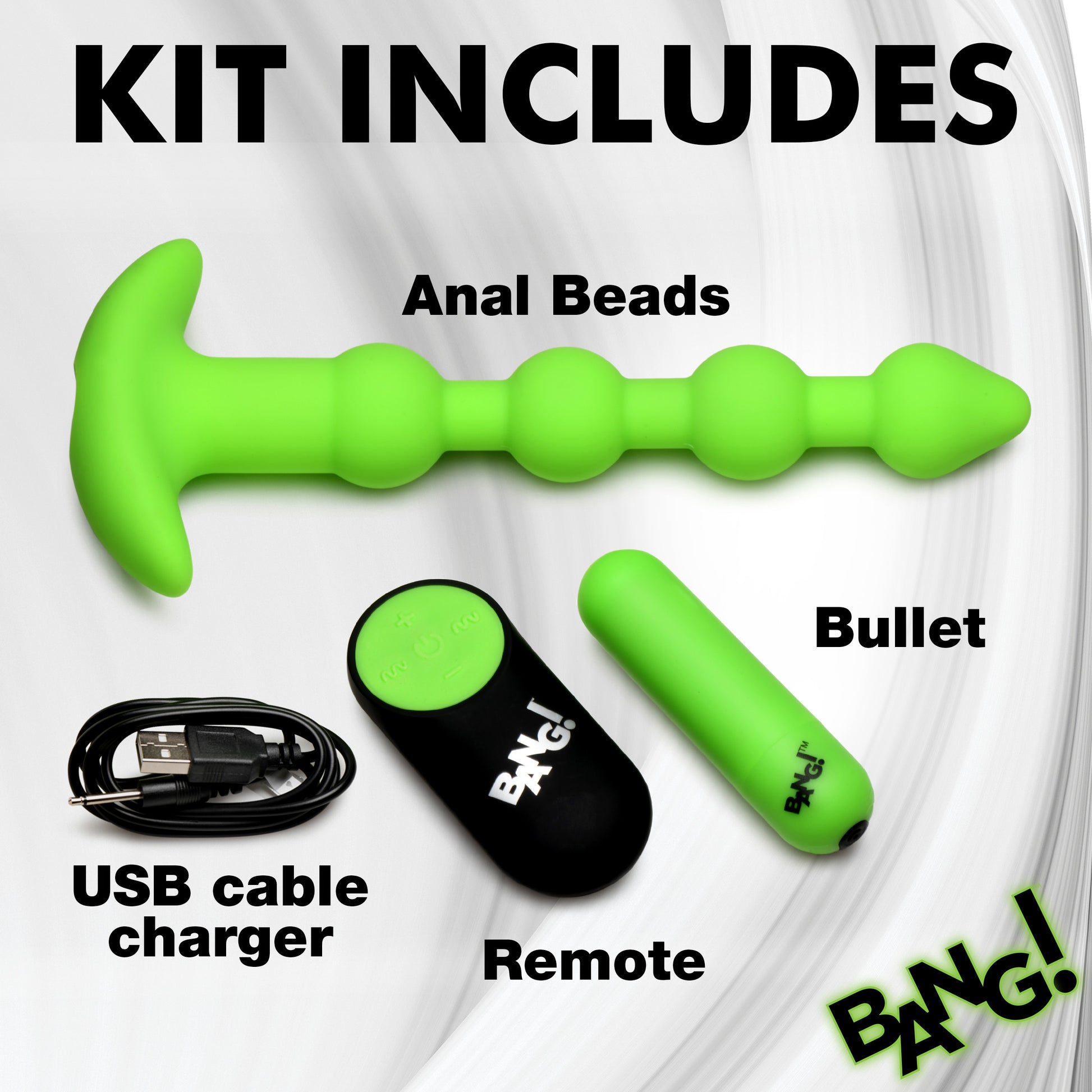 These glowing anal beads can shine in the night and make for a fun addition to your toy collection! Give yourself a glow by charging up the beads in sunlight, room light, or with a flashlight. Then turn off the lights and enjoy the glow illuminating your skin! The beads vibrate with 4 speeds and 7 patterns to choose from. Operate the toy from up to 25 feet away by playing with a partner who has the remote! Each of the silicone beads are packed with vibrating power. The tapered tip makes insertion easy and each bead pops in with ease. The silky smooth, premium, phthalate-free, and body-safe silicone is best used with water-based lubricants only. Recharge via the USB cable provided. After each use, wash it with warm water and mild soap, then rinse it off and spray it with a toy cleaner. Let air dry.
