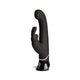 Silicone rabbit vibrator features 3 speeds and 9 patterns of vibration in the shaft, and 3 speeds in the ears, for a total of 36 possible combinations. Curved shaft stimulates the G-spot. Whisper quiet and waterproof. Recharge via USB for 120 minutes to provide 60 minutes of stimulation. Includes a luxurious satin storage bag. Measures 9.5 inches long, 5.25 inches insertable, 2 inches base diameter.