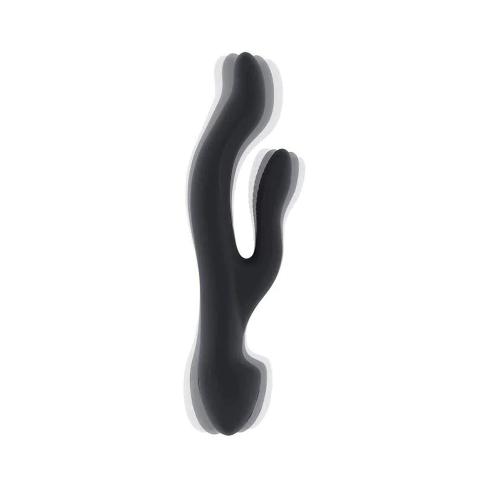 Silicone couples vibrator with two 10-speed USB rechargeable motors measures 8.38 in. long, 4.52 in. insertable, 1.37 in. wide, 1.06 in. insertion width. Waterproof.