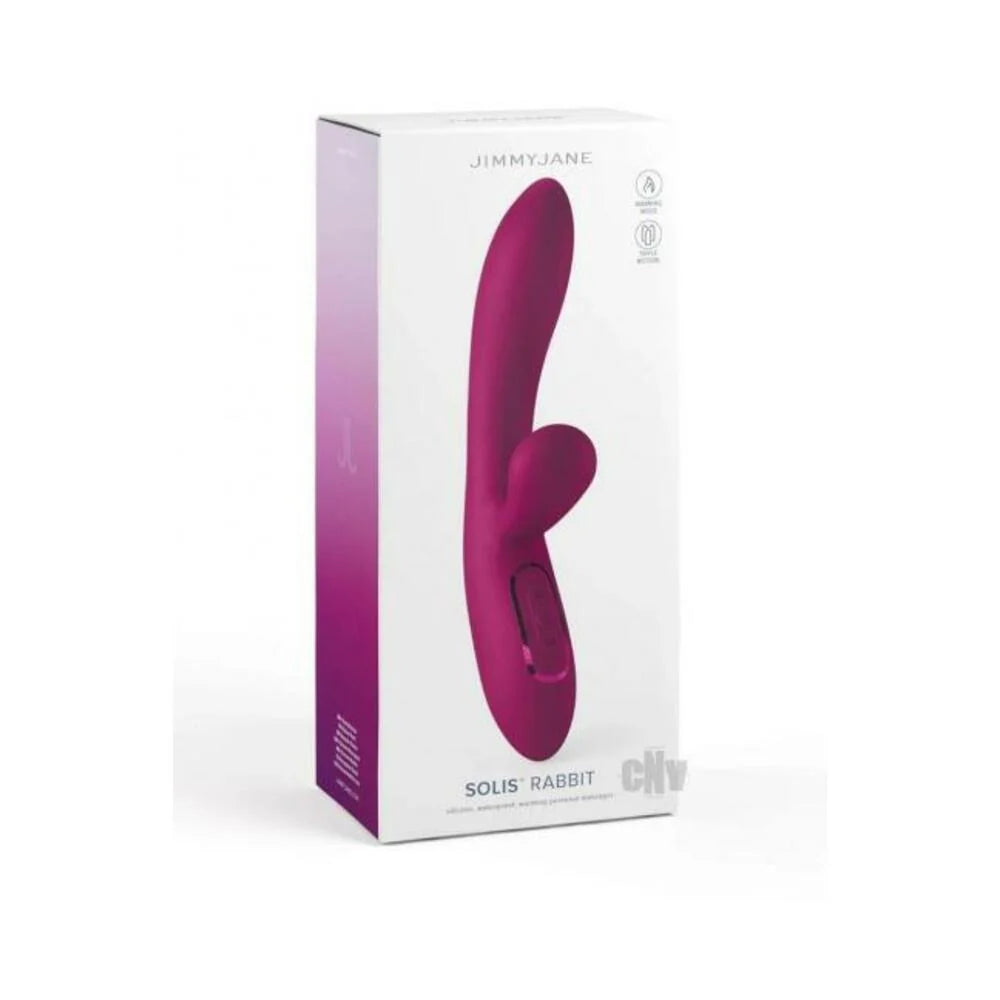 JimmyJane Rabbit Solis Vibrator from Pipedream Products. The Solis Rabbit Vibrator is unlike any other Vibrator on the market. It is specifically designed to give you a mind blowing orgasm thanks to its unique combination of rhythm and intensity. This Vibrator features three powerful motors in two separate zones, providing ultra intense stimulation to your vaginal canal and labia while also teasing your clitoris. The result is a blended orgasm like you have never experienced before. One that will certainly leave you gasping for more. The treble and bass motors operate at different frequencies creating stereophonic vibrations that will set you adrift on a cloud of ecstasy. Additionally, the warming mode is perfect for temperature play, adding an extra layer of sensual pleasure to your experience. With 10 different vibration patterns, per motor zone to choose from, the Solis Rabbit is sure to satisfy even the most demanding lover. From quickies to marathon sessions, this versatile Vibrator has you covered with up to 45 minutes of play time. Imagine being enveloped in a cloud of pure bliss, your body quivering with pleasure as the Solis Rabbit takes you to new heights. Whether you are using it to tease and tantalize your most sensitive areas or explore its infinite possibilities with a partner, the Solis Rabbit is sure to become your new best friend. So go ahead and let yourself go: the Solis Rabbit is waiting to take you on the ride of a lifetime. Features: Stereophonic Vibrations. Independently controlled head motor allows for pin point external vibrations. Powerful, fulfilling vibrations. Used by women and couples. Features a discretionary travel lock. Great for G-Spot, clitoral and full body stimulation. Waterproof and washable safe. Rechargeable, Magnetic USB cord and cloth storage bag included. Triple Vibrating Motors in Two Zones. Two Vibration zones: Zone one - Motor in the head. Zone two a motor in the Shaft and another in the ear. Zones one and two are independently controlled and can be used simultaneously or individually for unique stimulation experiences. Designed for Ultimate Pleasure. Used internally, the ergonomic shape comfortably contours to your bodys pleasure points. The head is exquisitely curved to offer G-Spot stimulation, the shaft motor delivers intense vibrations though out the vaginal canal and labia, while the motor in the ear offers powerful clitoral stimulation. Used externally, the pinpoint vibrations in the head will deliver powerful stimulation to the clitoris, labia, nipples, or anywhere your desires lead you. Stereophonic Vibrations. While the head vibrator bass is designed to offer focused, deep rumbling vibrations desired for G-Spot stimulation. Warming Mode. The single temperature warming mode brings the vibrator just above body temperature in just a few minutes. Specifications: Size Length 8.7 inches. Width 1.4 inches. Depth 2.6 inches. Insertable Length 4.9 inches. Insertable Diameter 1.4 inches. Bulk weight 8.4 ounces. Materials: Silicone, ABS Plastic. Categories: Vibrators, Rabbit Style Vibrators, Eco-Friendly Sex Toys, Rechargeable Vibrators, Sex Toys for Women, G-Spot Rabbit Style Vibrator. 2024.