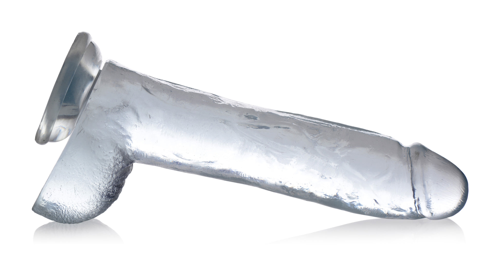 This crystalline cock is thick, clear, and hand crafted for peak pleasure. Perfectly sculpted with lifelike details and a meaty ballsack, this huge 10.5 incher is great for veteran size queens or kings. Designed to be low maintenance and easy to clean so you can play hassle free and focus on your pleasure.