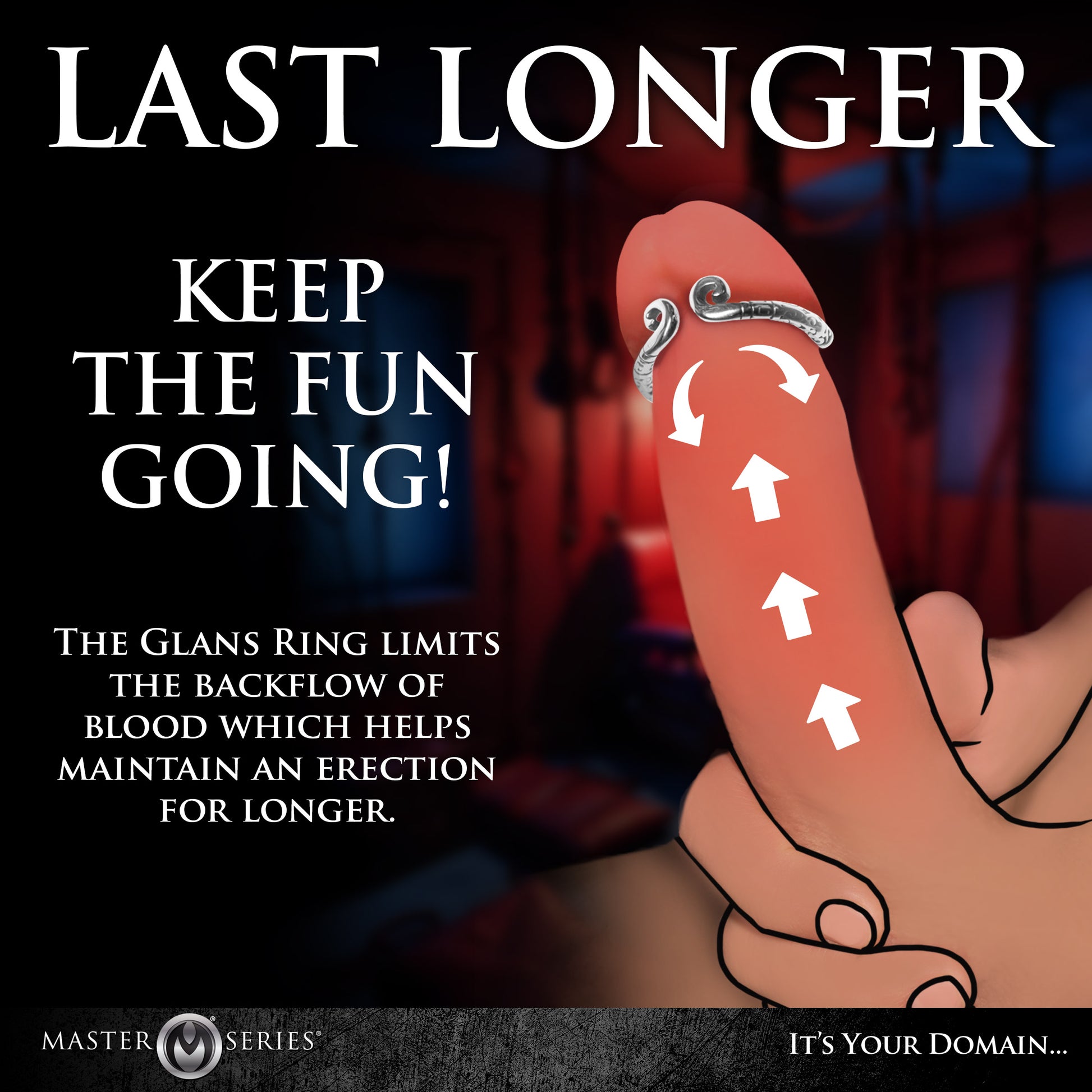 Indulge in heightened sensations and an upgrade to your look with this Kingpin glans ring! The gorgeous design includes whorls of patterns along the ring and curled ends. You're choosing quality when you choose stainless steel that is nickel-free, temperature sensitive, and strong enough to last. The pressure on the head of your shaft will make your head hard and sensitive, enhancing all feeling while you experience pleasure with or without a partner. Your partner will also enjoy the sensation of the ring on the head of your shaft, as well as the improved look! The ring even has an open closure so you can slightly adjust the tightness! To clean, simply wash with mild soap and water. Do not use it during anal play or you risk losing the ring.