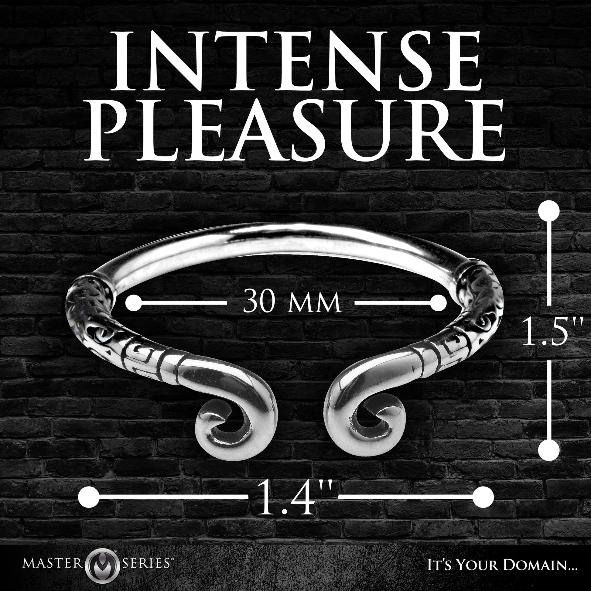 Indulge in heightened sensations and an upgrade to your look with this Kingpin glans ring! The gorgeous design includes whorls of patterns along the ring and curled ends. You're choosing quality when you choose stainless steel that is nickel-free, temperature sensitive, and strong enough to last. The pressure on the head of your shaft will make your head hard and sensitive, enhancing all feeling while... Read More
