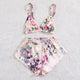 Lingeries Sets Sexy Satin Silk Lingerie Sleepwear Flower Printing Underwear