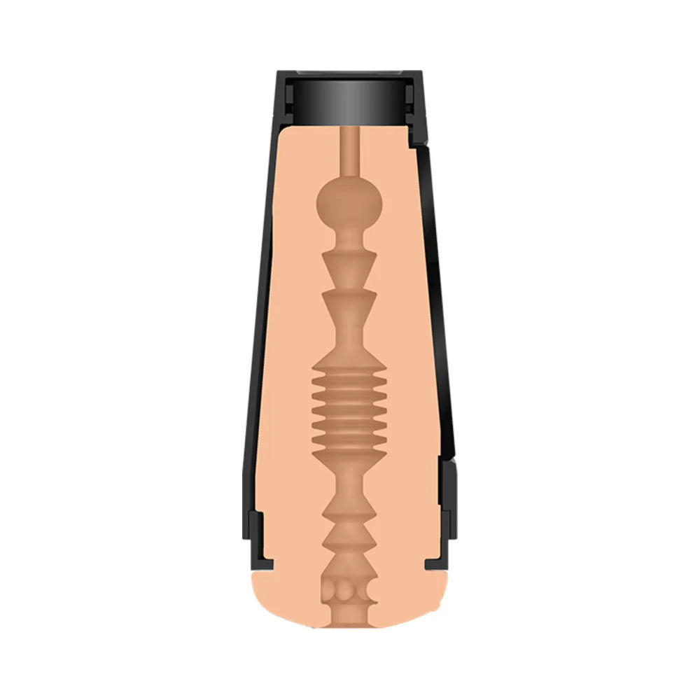 This textured Ultraskyn masturbator is molded from porn star Vicky Vette. Features a hard outer case with a built in squeeze plate grip that allows user to control pressure. The base twists to adjust suction strength. Fully disassembles for cleaning. Measures 7.5 inches long by 3 inches.