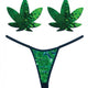 Neva Nude Naughty Knix Weed Leaf Sequin G-string & Pasties - Green O/s