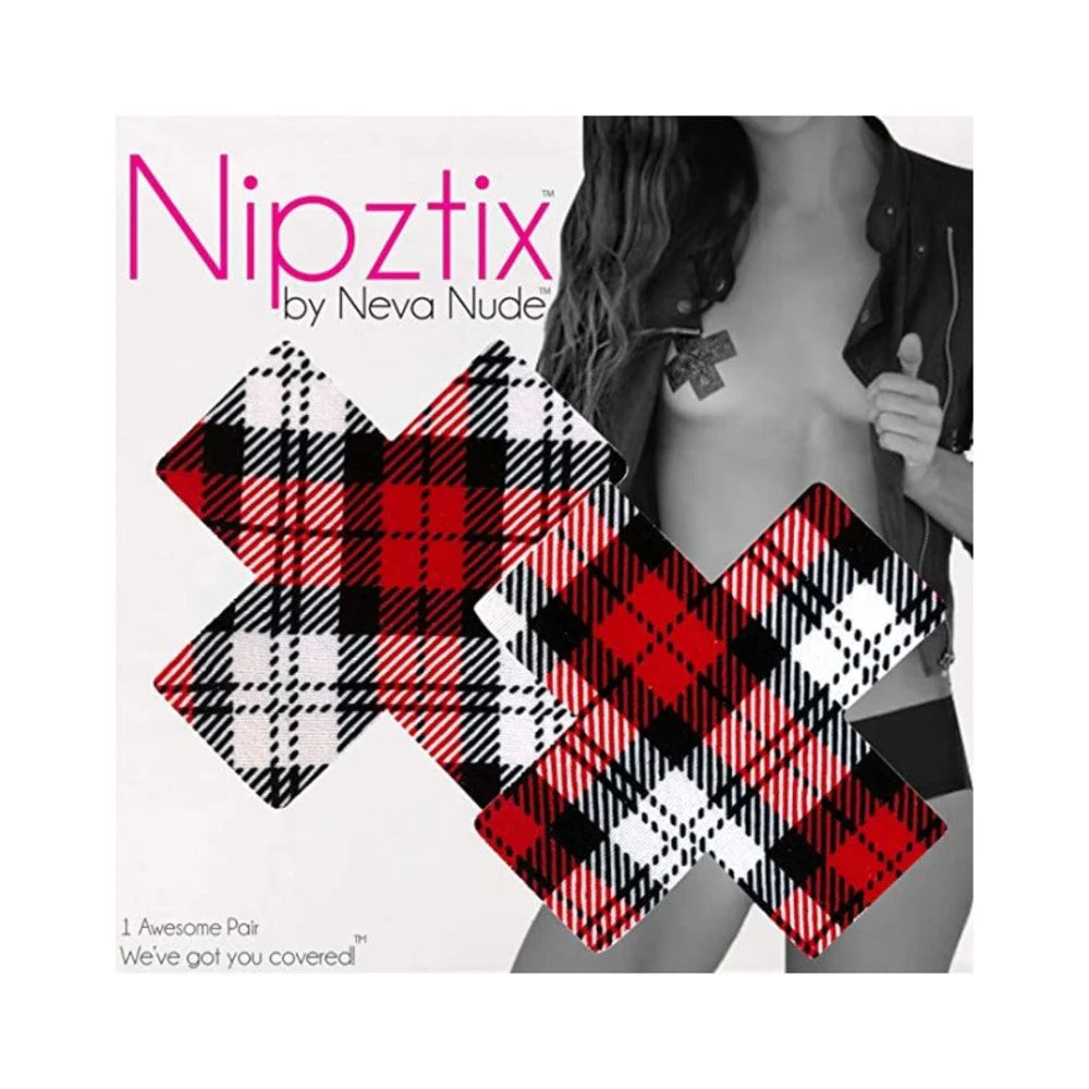 X Factor pasties with a school girl plaid use latex-free medical-grade adhesive. Made of swimsuit material, they last for 10 to 12 hours. @winter2019-13