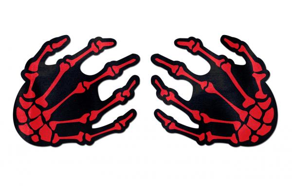 Skeleton Hands: Blood Red Boney Hands Nipple Pasties by Pastease® are hand-made in the USA of soft form-fitting material that forms seamlessly to curves and resists wrinkling over hardening nipples. Just peel-and-stick on clean, dry skin! All Pastease® feature latex-free, medical-grade, waterproof adhesive that stay securely in place for as long as you like and until they are gently removed. Conceal or Reveal with Pastease nipple pasties when worn with... Read More