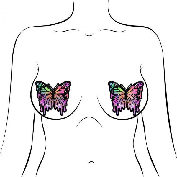 Pastease Trippy Butterfly Melt Rainbow Glitter Pasties. Butterfly Melt Trippy Glitter Rainbow Nipple Pasties by Pastease are hand made in the USA of soft form fitting material that forms seamlessly to curves and resists wrinkling over hardening nipples. Just peel and stick on clean, dry skin. All Pastease Brand Pasties feature latex free, medical grade, waterproof adhesive that stay securely in place for as long as you like and until... Read More
