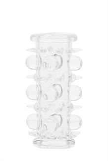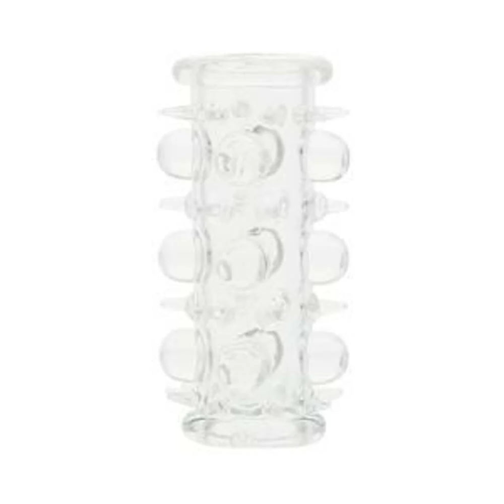 Penis Silicone Sleeve with Raised Nodules. Flexible Space age silicone sleeve slips comfortable over erection or on your vibrator for stimulating satisfaction. Raised beads will delight her like never before. Super stretchy silicone expands, and then returns to original shape. One size fits most men.