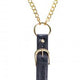 Apprehend them with this golden nipple clamp and cock ring set. Two alligator style nipple clamps with an attached chain form a devious Y shape that attaches to a 1.75 inches metal cock ring supported by a PU leather belt strip. The nipple clamps feature an adjustable pressure screw, while the cock ring assists in maintaining his erections. With each movement, the chains will pull on the clamps, sending stimulating... Read More