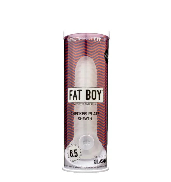 Perfect Fit Fat Boy Checker Box Sheath 6.5 inches Clear from Perfect Fit Brand. Like our original Fat Boy cock sheath, but with a new textured surface. Adds noticeable girth to your cock without being too much for your partner to handle. Made of super soft and stretchy SilaSkin, it is designed to give both partners intense, eye rolling pleasure. The Fat Boy was the first soft stretchy sheath ever... Read More