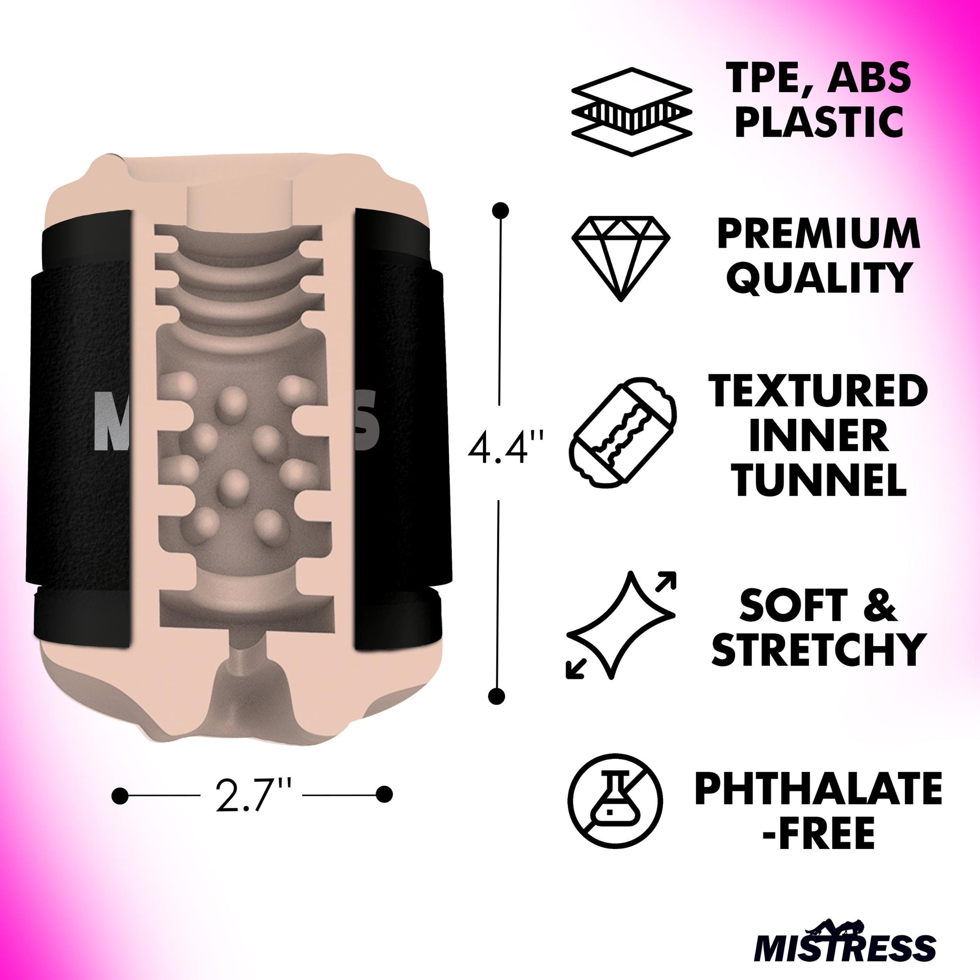 Textured Inner Tunnel: The inner tunnel of this delicious, TPE rubber has ridges, bumps and curves in the tight little hole of either the two stroker entrances.