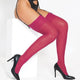 Thigh high sheer stockings. Raspberry. Sheer Nylon. One size. Weight: 120lb - 150lb. Bust: 36in. - 38in. Waist: 28in. - 30in. Hip: 38in. - 40in. Cup: B. Dress: 6-12.
