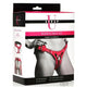 Peg your partner in style with this deluxe leather corset harness! Vibrantly colored, it is also beautiful, flattering to your figure, and comfortable to wear! Made out of leather, the outside is brushed so it is soft. It`s durable, long-lasting and forms to your body the more you wear it. Adjust the straps around the thighs and hips using the nickel-free, metal buckles. Adjust the back with stylish, corset-style closure that has nylon laces. Along the inside is a soft lining that reduces chafing and makes wearing it more comfortable for long scenes. At the front is a metal o-ring. Spot clean as needed. Grab your strap-on dildo and fit it into the o-ring. Pull the harness on and adjust it so it is comfortable and supports the weight of your dong. Then grab your lube, your partner, and enjoy the play! Have them start by playing with the dong, pretending it`s your dong and giving it oral. Then have them on their back or on all fours. Let them add the lube to their own hole and to the dildo. Let them grab it and it themself with you guiding it in. As they stretch and open up, you can start thrusting and adjusting positions for their pleasure and your comfort. Enjoy the play and try it out in different ways and with lots of other toys! Measurements: Waist adjusts from 28 inches to 45 inches in circumference. Thigh straps adjust up to 23 inches in length. O-ring inner diameter: 1.5 inches. Materials: Leather, metal, nylon Color: Pink Key Features:Durable Leather: This durable, soft, brushed leather comes in vibrant colors, is long-lasting, and forms to your body over time.Adjustable with Corset Style Closure: Each of the buckle straps are easy to adjust. The back tightens with a corset-style closure.Nickel-Free Metal: All metal is nickel-free and body-safe.Soft Inner Lining: The soft, inner lining reduces chafing and discomfort.