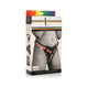 This Rainbow Harness is perfect for pegging and strapon play! It is compatible with most dongs and has 2 different silicone O-rings that fit around the base of any strapon dildo. With wide, rainbow pattern, nylon straps, you have the most support and durability in a harness! The wait adjusts from 28 inches to 56 inches in circumference and has a wide back strap that helps support the weight of heavier toys. For added comfort, there is a triangular pad in front of the pelvis that creates a cushion between the toy and your skin and also protects against abrasion or chafing. The harness is easy to adjust with plastic buckles that can be tugged and pulled to secure the perfect, snug fit! After play, spot clean as needed with mild soap and warm water and a damp cloth. Add some flair into your pegging play with this Rainbow Harness! First, fit your favorite, flanged dildo into the O-ring and test the fit. It should stay put and not slip through the rings. If it does, you will need a smaller ring or a larger dildo. Then, secure the dildo in the ring and slide the harness on. Adjust the buckles to secure the perfect fit, then grab some lube and invite your partner to enjoy the ride! Measurements: Waist adjusts from 28 inch to 56 inch circumference. Crotch strap adjusts up to 20 inches in length. O-ring diameters: 1.25 inches, 1.5 inches. Materials: PU leather, nylon, metal , ABS plastic Color: Rainbow Key Features:Adjustable Straps: Easily adjust straps both before wear and during by pulling at the plastic buckles.Padded for Comfort: Padding in front of the pelvis provides a bit of protection between the dildo and your skin.Wide Back Strap for Support: The strap sits above buttocks and crosses the hips for a little more back support. Perfect for heavier dildos!Includes 2 Silicone Rings: Comes with 1.25 inch and 1.5 inch diameter silicone O-rings.