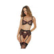 '=stretch Mesh Underwire Bra W/garters & G-string Black Medium