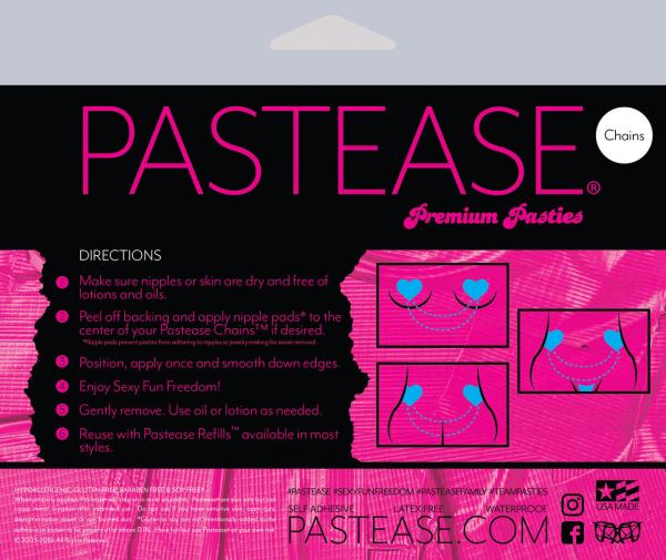 Gold Shattered Disco Ball Heart with Gold Chains Pasties from Pastease Brand. All Pastease are hand-made in the USA of soft form fitting material that forms seamlessly to curves and resists wrinkling over hardening nipples. Just peel and stick on clean, dry skin. All Pastease feature latex free, medical grade, waterproof adhesive that stay securely in place for as long as you like and until they are gently removed.Conceal or... Read More
