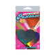 Hand made in the USA of durable pleather material that forms to curves and resists wrinkling over hardening nipples. Just peel and stick on clean, dry skin! All Pastease pasties feature latex free, medical grade, waterproof adhesive that stays securely in place for as long as you like and until they are gently removed. Dimensions 3 inches wide by 2.5 inches tall. Coverage diameter 1.8 inches. Silver Hologram Heart.
