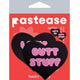 love: 'let's do butt stuff' in black & pink heart nipple pasties by pastease® are hand-made in the usa of soft form-fitting material that forms to curves and resists wrinkling over hardening nipples. just peel-and-stick on clean, dry skin! all pastease® pasties feature latex-free, medical-grade, waterproof adhesive that stays securely in place for as long as you like and until they are gently removed. conceal or reveal with pastease® nipple... Read More