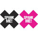 One black and one pink pair each of x-shaped pasties with spank me on each. From Xgen Products.