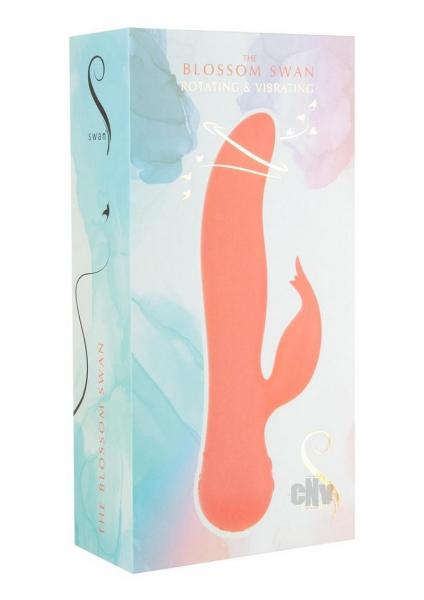 Description: Let your passions bloom with the Blossom Swan® dual action vibrator! Prepare yourself for the elegant beauty and sensational power that Swan® is bringing to you with this dual action vibrator.andnbsp; The tapered, curved tip on the rotating body is designed to massage your G-Spot and as the rotations speed up, so do the sensations.andnbsp; The rabbit-style clitoral arm has an all-encompassing tip with elegant floral petals that flick and flutter as the vibration speeds increase, delivering powerful vibrations to your most sensitive area.andnbsp; Two separate PowerBullet® motors provide extraordinary power but are controlled separately with two buttons at the base of the Blossom.andnbsp; Easily increase the speed of the rotation or vibration by holding down the desired button.andnbsp; You`ll feel the vibrations intensify or the rotation speed up, taking you on a trip to complete bliss.andnbsp; The Blossom Swan® shell is made from a 100% body-safe high-grade silicone shell, giving it a smooth and luxurious feeling against your skin.andnbsp; Its virtually seamless design makes it easy to clean and the travel lock means you won`t have any unwanted noise or motion coming from your bag.andnbsp; And you will definitely want to take the Blossom on the go, as it comes with a luxurious satin travel pouch and can easily be charged via the provided USB cable.andnbsp; Always use a water-based lubricant with the Blossom Swan® and remember to clean it before and after each use with a toy cleaner.andnbsp; Pursue your pleasure with the Blossom Swan®! Key Features: Dual-Action Vibrator Rabbit-Style Clitoral Stimulator Rotating and Vibrating Incremental Speed Control 100% Premium Silicone Shell Powered by PowerBullet® Body-Safe Waterproof Virtually Seamless Easy to Use Easy to Clean USB Rechargeable Charge Time: 3 Hours Up to 2.5 Hours of Playtime 1-Year Limited Manufacturers Warranty Award-Winning Product Line Dimensions: Length: 8.5 in. Width: 2.6 in Insertable Length: 5.25 in. Diameter: 1.5 in. Box Contents: Blossom Swan® Vibrator USB Charge Cable Satin Storage Pouch Guide