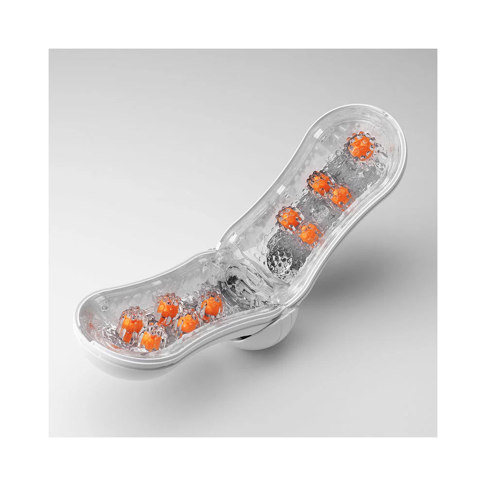The Tenga Flip Orb Orange Rush is filled with orange orbs and ribs for a unique sensation as the user passes through: Size (D × W × H inches): 2.80 × 3.39 × 7.01. Insertion Length (inches): 5.51. Other Specs: Reusable, Sample Lotion Included. Materials: ABS / PC / Elastomer@np2020-36