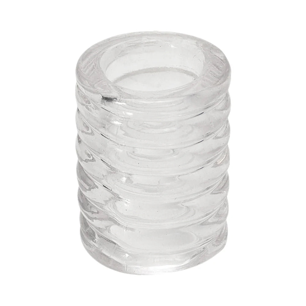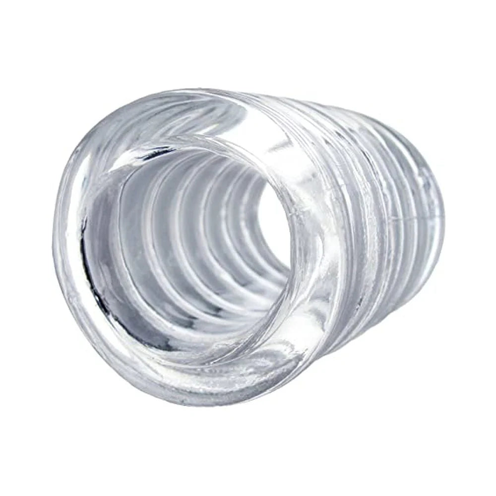 Titanmen TPE Cock Cage (Clear) Fulfilling the same basic function as a cock ring, but broader and more robust, Titanmen's reliable Cock Cage lets you stay harder longer while adding girth. The sleeve has ribbed texture for enhanced stimulation for your partner, plus a cozy tightness for your dick. Made in USA of anti-bacterial PVC with Sil-A-Gel, and 100% phthalate free, it stretches to fit most penises. We advise you... Read More